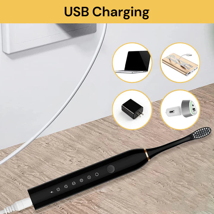 - USB Rechargeable And Smart Timed Reminder:Β The sonic electric tooth adopts a USB charging design and has a long battery life of 500mAh. It only takes 2 hours to fully charge, and it can be used for 30 days. And the electric toothbrush has a built-in 2-minute brushing timer, which will pause every 30 seconds. Not only can it help you reach the time recommended by your dentist, but it can also remind you to change your brushing area for effective cleaning.