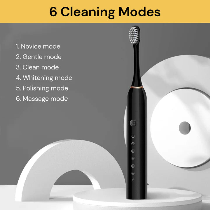 6 Brushing Modes:Β The toothbrush has 6 modes for novice, gentle, clean, whitening, polishing and massage. It is suitable for different mouths and gums, and you can choose a stronger or softer mode according to the condition of the gums.